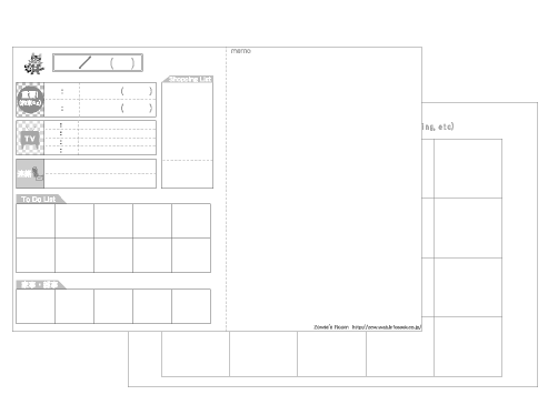 それぞれサイズはA4の1/4の大きさなので、カットしてお使い下さい。私は2枚をクリップで止め、半分に折ってシステム手帳にはさんで使っています。