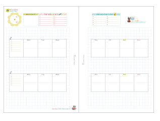 以前、試験的に作って試用してみたところ、思いのほか使いやすかったので、微調整をして公開することにしました。方眼は、これまでも入れてきましたが、全面だと圧迫感がある(と感じる)ので、全面に入れないのはこれまでと一緒ですが、方眼の中に2週間を二段に入れてみました。間に方眼スペースがあると、色々書きたくなって、良いアイデアも浮かびそうな気がして、それに、何より楽しい!!